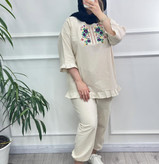 ست بلوزشلوار نچرال جنس لینن فری سایز(مناسب سایز 38 تا 48)