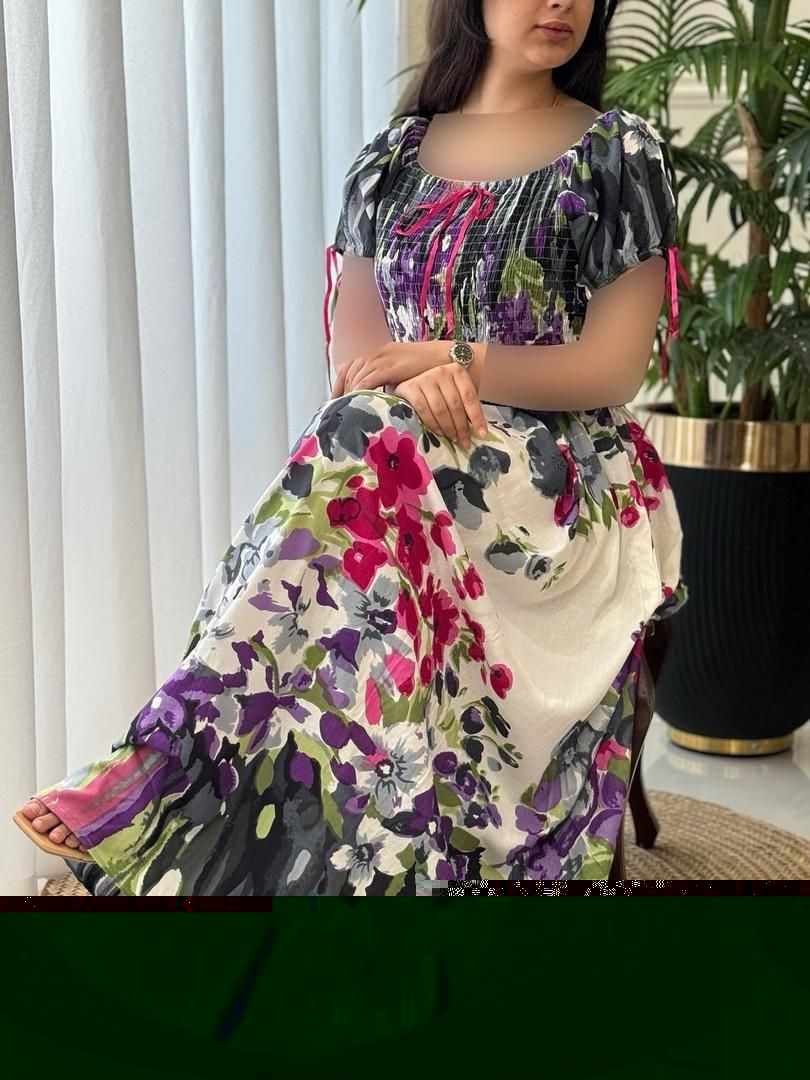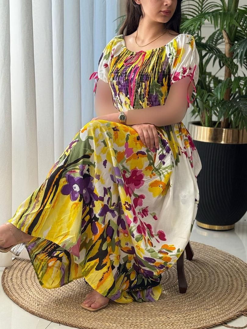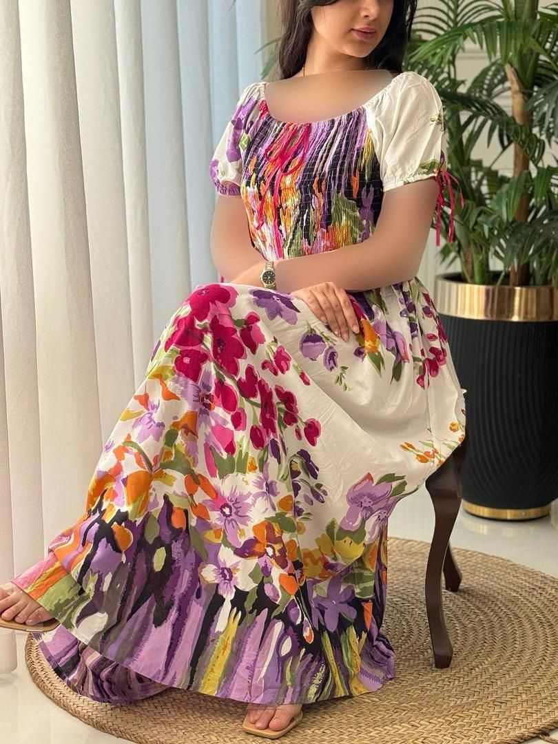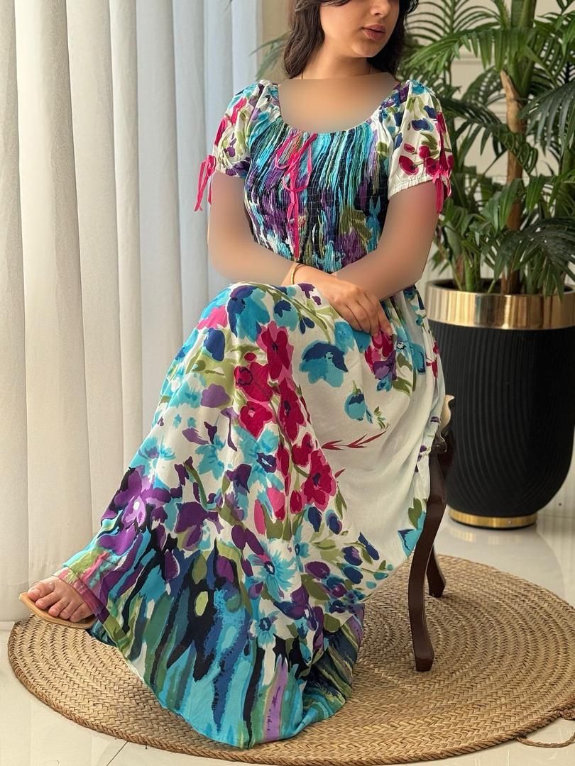 پیراهن ساحلی آستین کوتاه هندی جنس نخی