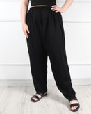 شلوارزنانه جنس نخی کمرکش مشکی 36