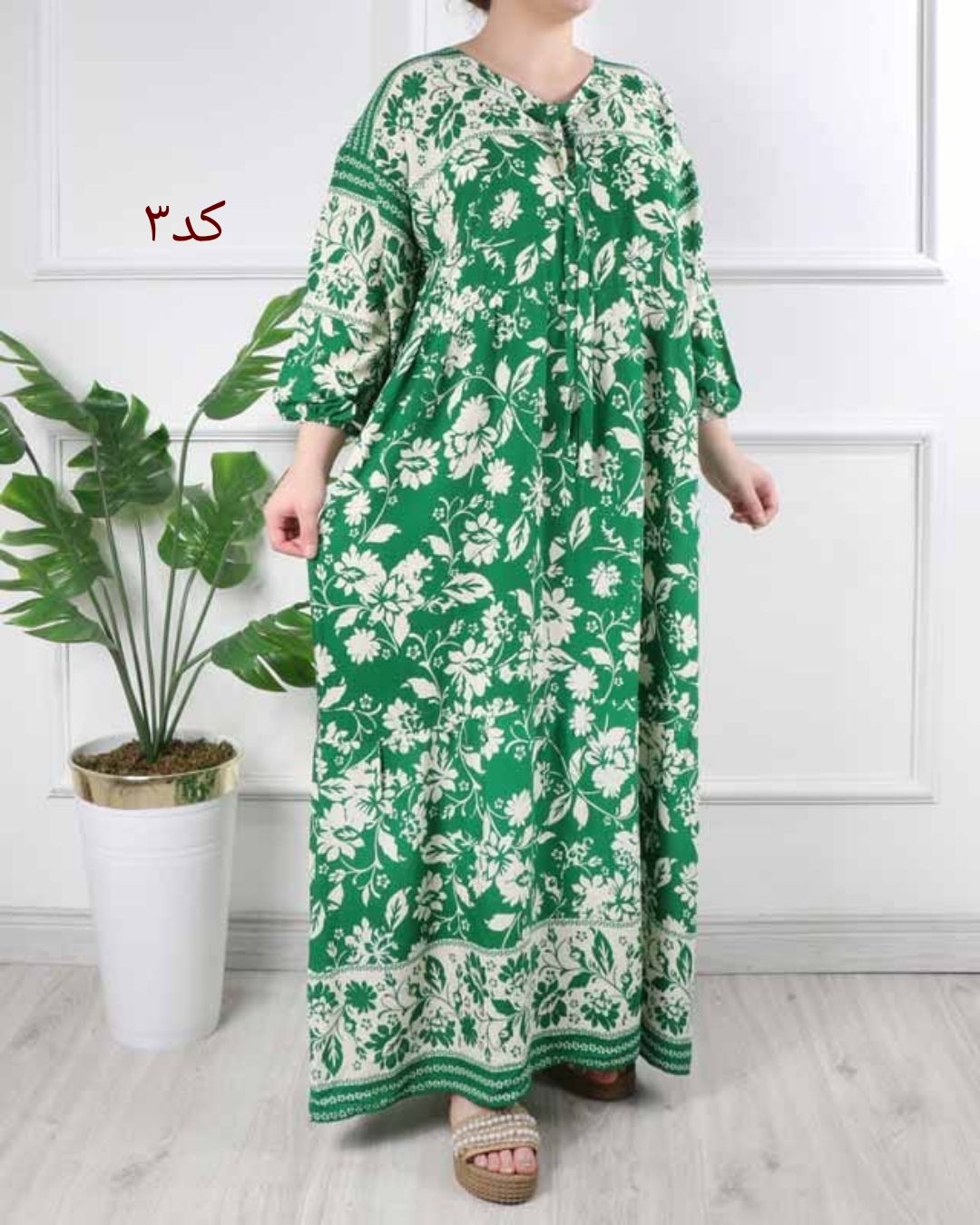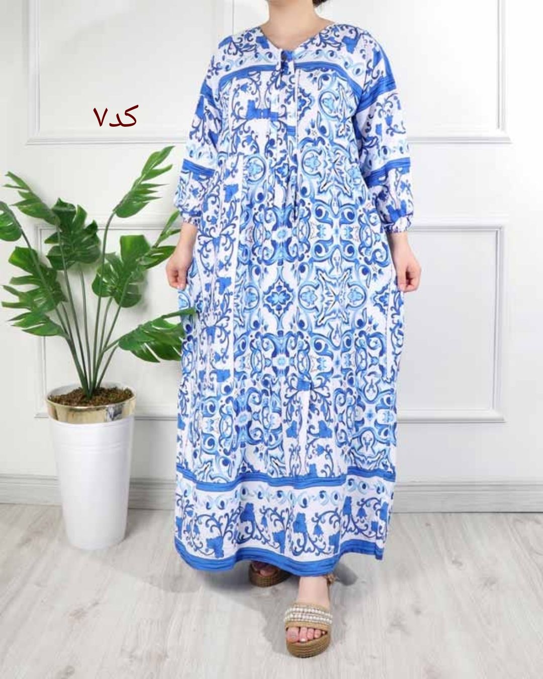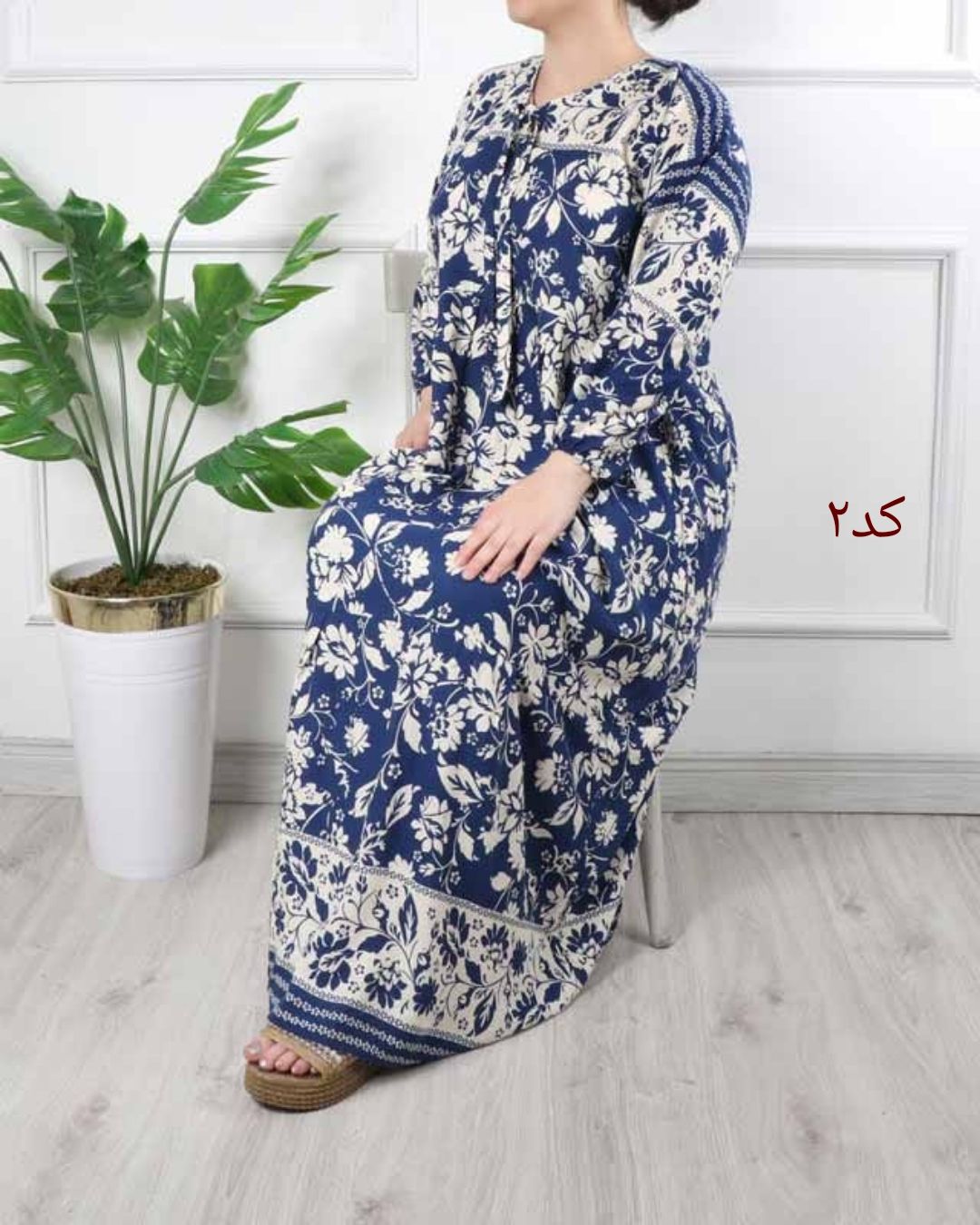 پیراهن ساحلی جنس فلور یقه بندی آستین سه رب کد40