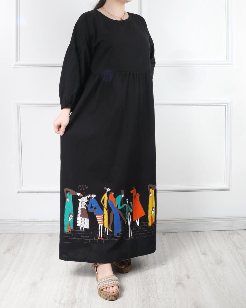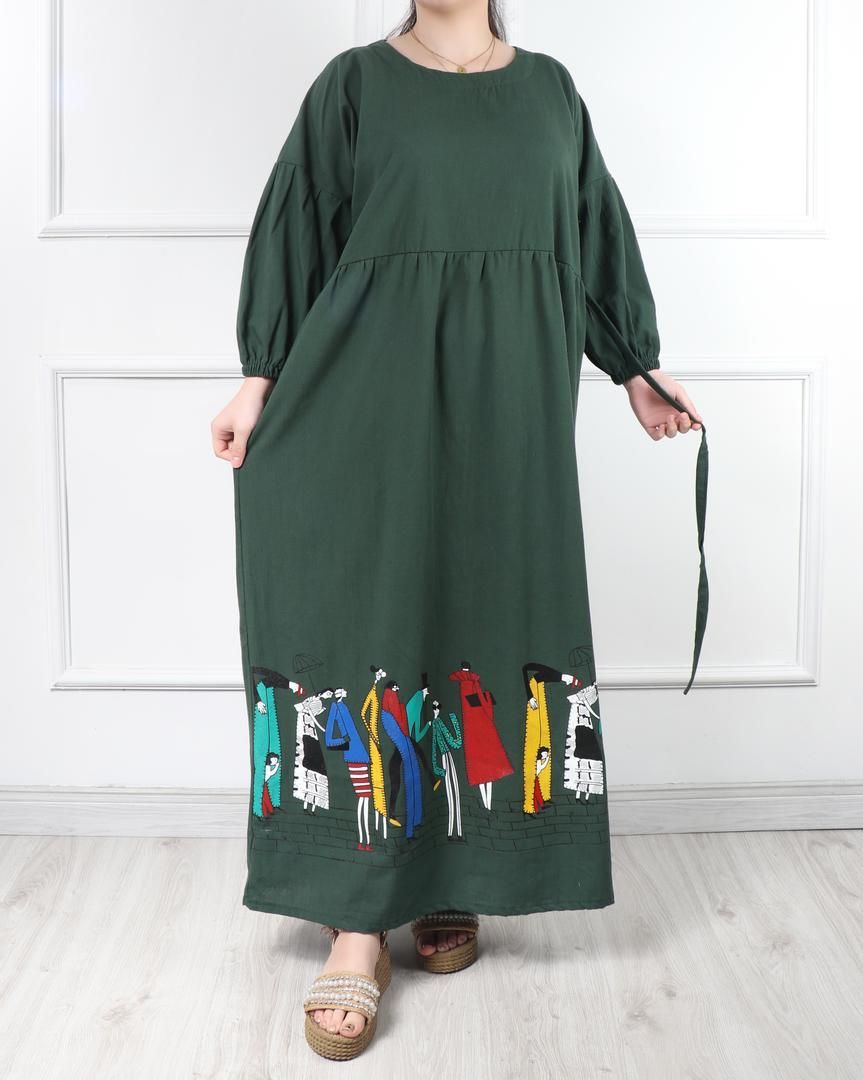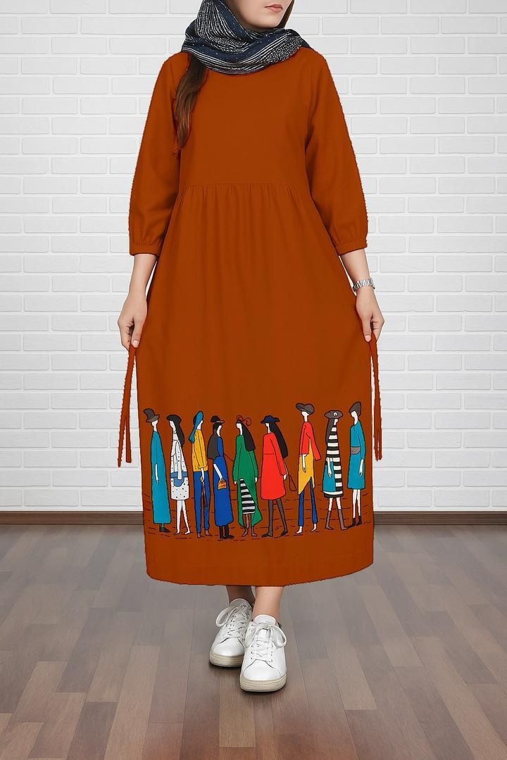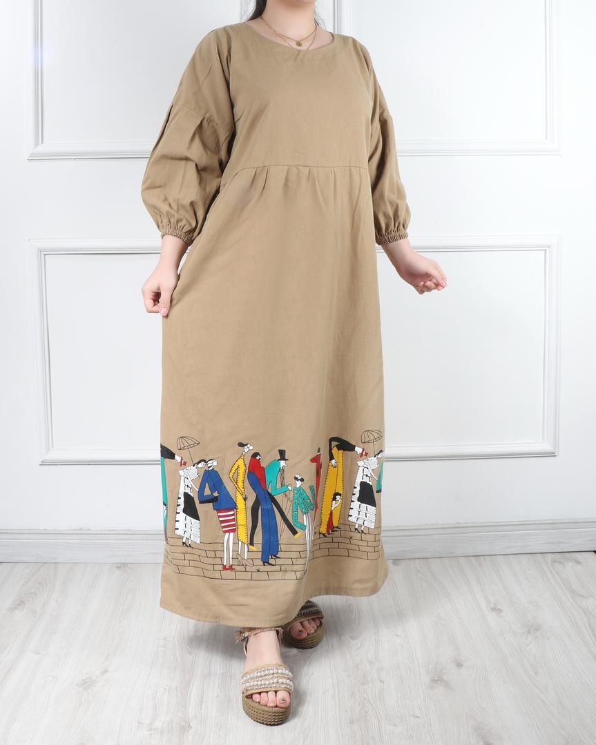 پیراهن مانتویی زنانه جنس لینن پایه دامن چاپی یقه گرد کد44
