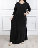 پیراهن مانتویی مشکی جنس نخی یقه گرد